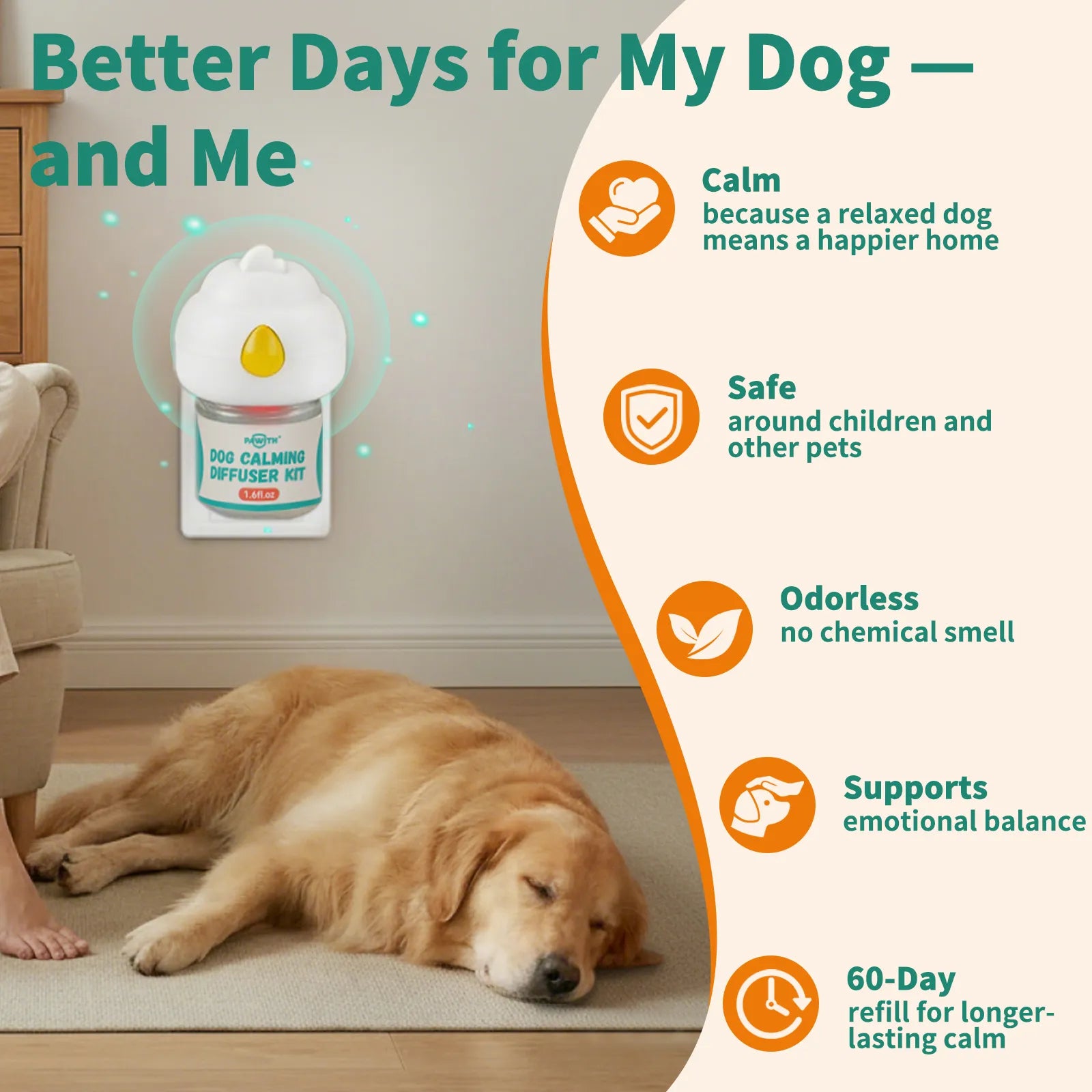 PAWITH helps reduce stress-driven behaviors like scratching and marking, giving your home—and your dogs—a sense of peace. It's like whispering soothing words to your furry friends, all day, every day.